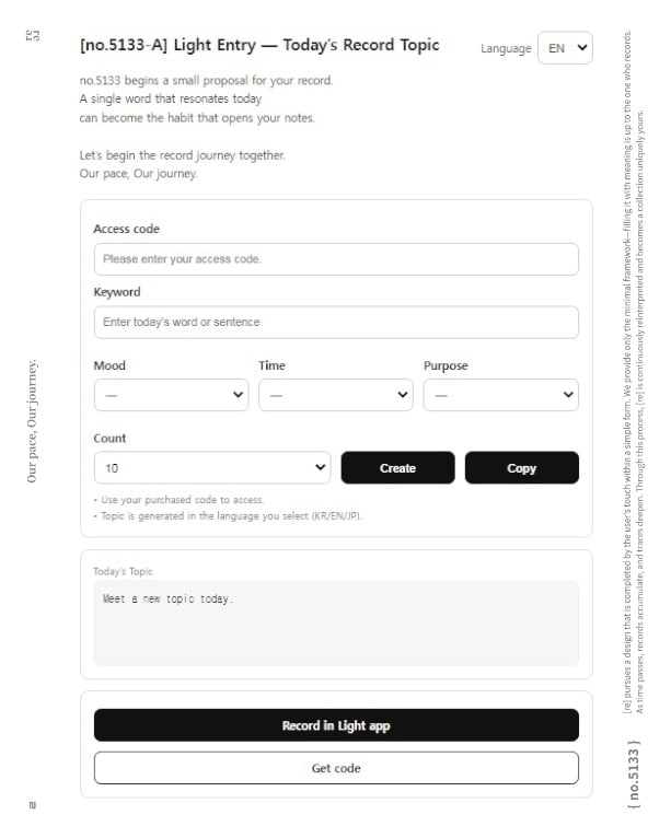 [no.5133-A] Light Entry โ Keyword-Based Journaling Tool for Daily Reflection & Writing Habit Builder